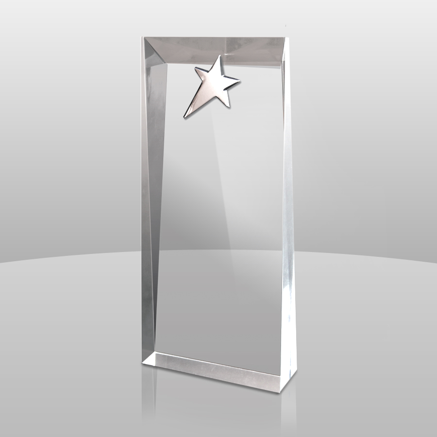 The Palisade Award is part of our Solitaire Collection. This item is a free standing faceted piece of acrylic, shown here with optional chrome star.